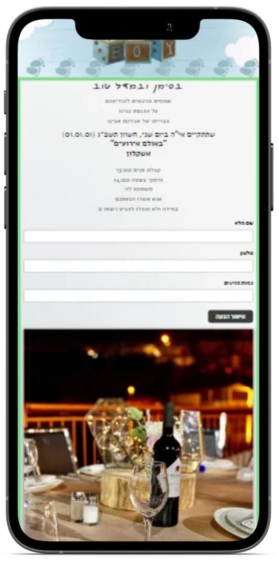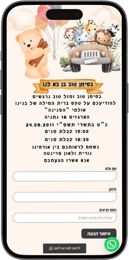 עשיתי הזמנה דיגיטלית לברית יצא מדהים והשירות מעל למצופה תודה רבה מומלץ בחום משפחת זולברג